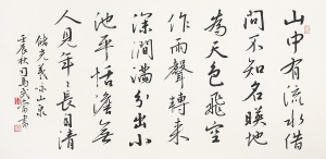 司马武当自幼研习书法,上追魏晋,师法“二王”,其书风高古厚重,格清调雅,以楷书和行书为主,用笔凝练,以中锋为主,正侧兼用,提按顿挫,悠闲从容,不温不火,进退起伏皆有章法,风格含蓄蕴藉,给人一种娴雅淡泊含蓄之美。这与司马武当幼年的书法启蒙教育分不开。