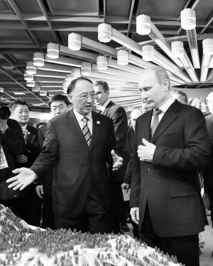 普京在刘鹏的陪同下,参观了中俄体育友好交流图片展,并了解中国申办2022年冬奥会情况。此外,普京还饶有兴致地观看了两国武术、太极拳爱好者带来的精彩表演。当看到俄罗斯青少年表演的武术基本展示时,普京不时鼓掌称赞。