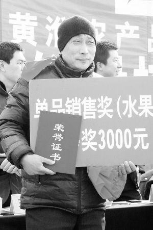 卖菜、卖水果卖得好、卖得多,不仅自己赚钱,还能得到奖励,这样的好事让黄淮农产品大市场的商户摊上了。2月11日上午,记者到该市场采访,恰逢2013年度商户表彰大会召开,不少依托市场平台把生意做到全国各地、把一度“卖难”的周口农副产品销往全国各地的“卖菜大王”得到奖励,总奖励金额逾30万元。得到3000元奖励的水果商谭德军(左图)高兴地说,平台好、政策好,他越干越有劲!晚报记者 李伟 摄