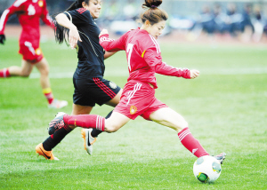 但女足姑娘们很快就将比分扳平。第三分钟,墨西哥队发边线球,李影抢断后送出妙传,杨丽快速前插,禁区内冷静推射破门。第13分钟,墨西哥队的一次任意球进攻击中横梁,现场球迷一阵惊呼。第14分钟,中国队中场抢断发出长传,皮球越过墨西哥队后防线,杨丽接球突入禁区后再进一球。