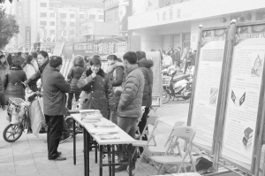 春节过后,又到了大量农民工外出务工的时候,为让农民工了解更多的法律知识,增强运用法律手段维护自身合法权益意识,昨日上午,市直多家单位和企业在周口客运中心站外设立法律援助展板,向准备外出的务工人员和过往群众宣传相关法律知识,现场解答法律咨询。晚报记者 朱东一 摄