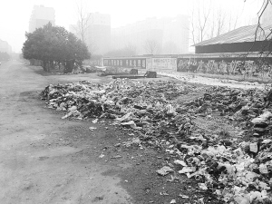 2月15日上午记者赶到现场,看到此处的垃圾池旁不仅堆放了很多生活垃圾,还不时有一些骑着机动三轮车的人前来此倾倒垃圾。“平时附近几条街道的垃圾都来这里倾倒,致使这里的垃圾非常多。”现场一位市民告诉记者,“我家就住在附近,经常看到有人来这里倾倒垃圾,虽然昨天有清运车辆来清理垃圾了,但是过了一个晚上,这里的垃圾又堆成了小山(如图),希望相关部门每天能及时清运这里的垃圾,否则垃圾会越来越多,你看,这垃圾都堆到路上了,时间长了,可叫人怎么过路呀!”