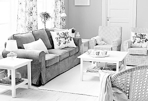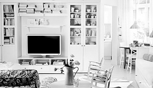 属于一个人的小居室,客厅既是工作室,也是视听室、娱乐室。灵活容易移动的家具是首选,可轻松更换的沙发套和靠垫套则充分显示季节与心情。春日明朗,不妨多渲染欢快、愉悦的色彩氛围。清淡宜人的窗帘,如米白、粉绿、淡蓝等,搭配上更为春日的植物图案或者灵动的几何线条,让窗帘既是风景也是艺术画面。为布艺沙发改换浅色系的罩套,选用的颜色与周围环境的主色调反差以体现出春意盎然的激情。若是皮质沙发则可以靠垫而变身,缤纷亮丽的布艺靠垫可让稳重的皮质沙发完全颠覆往日的风格,如此恰到好处的搭配会让眼睛倏忽亮丽起来。
