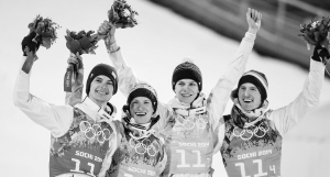 当日,在2014索契冬奥会跳台滑雪男子团体比赛中,德国队以1041.1分的成绩夺得金牌。
