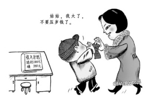 “今年挣了4000多元的压岁钱,比去年多了差不多1000元。”周口师范学院文学院大二的小李说,“家长给孩子压岁钱,在我们家是个习俗。我们家小孩儿只要上学没毕业,爷爷奶奶和长辈都给压岁钱。我今年的压岁钱不少,开学的时候,我都没好意思向爸妈要生活费。”