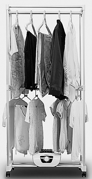 而从实际使用效果看,暖风干衣机也可以达到“一机多用”的效果。除了干衣之外,绝大多数暖风干衣机都采用衣柜式设计,不用时可充当衣柜;此外,如果拆下外部支架,还可以当取暖器用;有的干衣机还带有高温杀菌或紫外线杀菌的功能。