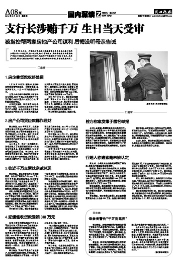 支行长涉贿千万 生日当天受审