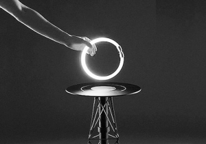 来自法国一个Florian Dussopt工作室的一款茶几设计也用到类似的电磁场作用。他们在茶几内装上了一个无线电发射器,打开电源后,看上去与普通茶几无异的茶几立刻变得神奇起来——当我们拿着灯泡靠近它,灯泡不用通电就会变亮,而且靠得越近,灯泡就会变得越亮。