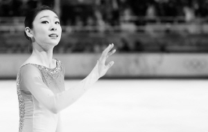 当地时间2月22日,女子单人滑亚军、韩国选手金妍儿在表演中。当日,2014年索契冬奥会花样滑冰举行表演赛。