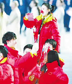 闭幕式上,中国运动员庞清戴“红鼻头”娇俏可爱
