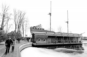 这座乡间别墅连同广阔的庭园,占地约为140公顷,相当于摩纳哥一半大小,不但有人工湖,还有高尔夫球场、珍稀动物园、码头和直升机停机坪等设施,并收藏了大量古董名车,其中最能尽显奢华的要数一艘停泊在湖上的仿古游艇,里面的餐厅金碧辉煌,挂着水晶吊灯,摆设和餐具极为精致,餐桌上放满了洋酒,其中一瓶印有亚努科维奇的肖像。就连洗手间也是金光闪闪,水龙头和马桶都用上镀金装潢。