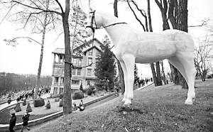 在亚努科维奇位于基辅市外的别墅,由于他突然离开,示威者如入无人之境,趁机一窥这位总统的奢侈生活。别墅目前有民兵看守,大批民众蜂拥而至,在庭园到处游览,一时之间成为观光胜地。不过别墅房屋保持关闭,民众只能透过玻璃窗一窥内里。