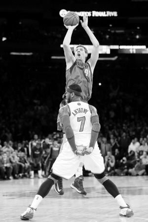 距比赛结束还剩10秒,小牛队将球权交到诺维茨基手上,“诺天王”不负众望,在篮筐正面用标志性的中投完成压哨“绝杀”,为小牛队赢得一场胜利。