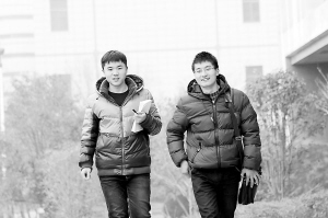 2月27日,记者见到遆广凯时,他正和室友郭昆仑往宿舍走(如图)。眼前的这个90后小伙子有点儿腼腆。“给你添麻烦了,你想问什么就问吧。”遆广凯说,他虽然是外地人,但从目前来看他至少还要在周口生活3年,“也算是周口人”。