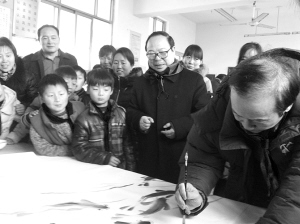 3月1日,商水县汤庄乡西赵桥村成了欢乐的海洋,村民们奔走相告着中国书画名家交流团到村里送书法和送画的喜讯。