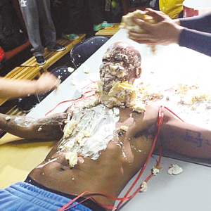北京时间2月20日,是北京首钢男子篮球队外援马布里37岁生日,当天队友们在更衣室里给老马安排了一场“残暴”的生日宴会。