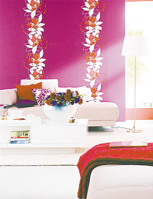 Pantone潘通发布的2014年度流行色“Radiant Orchid”兰花紫,更加偏向桃红色系,以玫粉色、紫色和粉色为基础色调,三者完美协调,也是一种更沉稳更摩登的色彩。而美国科尔兹涂料在预测2014年的流行色彩时,推崇的“尊享豪华”色系中也提到宝石红或将成为流行色。还有涂料品牌在2014年推出的都市民谣色板也充满了融洽与浓重的色彩,色调相近的紫红、黑紫与酒红营造出和谐的氛围,混合对比色便能打造出更为私人的空间。