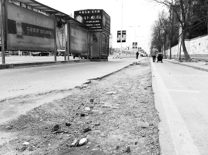 3月6日上午,记者在大庆路西侧人行道看到,供水管网改造后,被开挖的路面足有1米多宽(如图),从七一路路口一直向南延伸到周口建材城,整个长度约为1.5公里。记者注意到,供水管网改造完毕后,被开挖的路面只用泥土和碎石子进行了简单的填埋,路面显得坑洼不平,一些地方还存有积水。