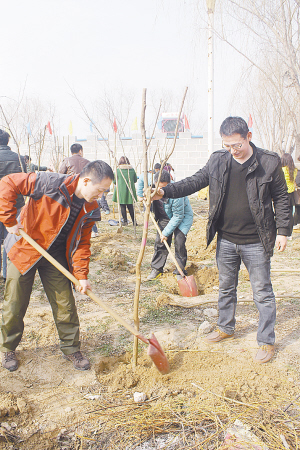9时30分,泰地集团周口现代城建设有限公司的员工带着树苗和铁铲来到植树现场,他们分工明确,分别挖坑、浇水、填土,不到半个小时,就把20棵树苗全部栽好了。公司员工张会霞告诉记者,对于她来说,和同事们一起来参加植树活动,是一次享受阳光、放松心情的好机会。