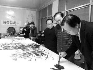 本报讯 昨日记者获悉,为宣传和推介周口美景,来自北京的著名画家华奎、朱明德、袁凤文、吴建潮等“中原壮行”采风团成员与我市画家携手,把游龙湖发现的美和感动,经过再加工、再创造,并与我市书画家段忠勇、一起,用一天时间创作出420cmX180cm的巨幅国画《春风和谐图》。龙湖中的芦苇、小船、飞鸟等风景和当地的风土人情,尽在画中。