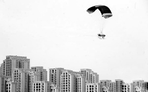 3月8日,由中航工业航宇救生装备有限公司研制的新型柔翼无人机人工消雾试验在湖北沙市机场成功完成。该柔翼无人机通过汽车拖曳起飞,人工遥控,飞翔灵活,落地平稳。据人工消雾系统项目工程师介绍,这款无人机是一种以冲压翼伞为机翼提供升力的低速无人机,它可以自主起飞、巡航和精确着陆,不仅不受传统作业飞机的飞行安全限制,而且具备有效载荷量大、飞行平稳、飞行时间长、安全可靠、起飞降落方便和操作简便等优势。该柔翼无人机在新型动力冲压翼伞、自主导航飞控和发射技术的设计上有多项创新和突破,解决了人工消雾的安全性和高成本难题。 新华社记者 郝同前 摄