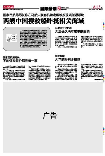 两艘中国搜救船昨抵相关海域
