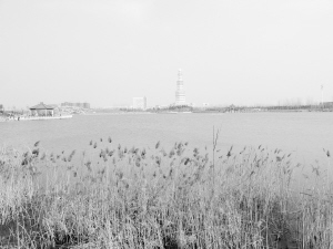 昨天,记者在周口公园景观湖畔看到,湖面碧波荡漾,距岸边不远处,芦苇随风摇曳,时而有野鸭和不知名的水鸟在湖中嬉戏,亭台廊桥分布岸边,组合成一道美丽的风景线。游园市民纷纷驻足观赏,合影留念。
