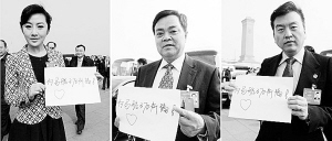 3月10日,北京,人大代表为失联马航370客机乘客祈福。 新华社发