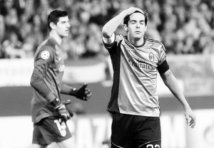 相比之下,马竞本回合的大胜显得毫无争议。带着客场一球小胜的优势,马竞当晚在主场开启了进攻模式。科斯塔在开场3分钟后就破门成功,为马竞取得梦幻开局。卡卡在第27分钟为AC米兰追平比分,但这个头球也成为米兰在本届欧冠的最后一粒入球。图兰在第40分钟再度帮助马竞取得领先。