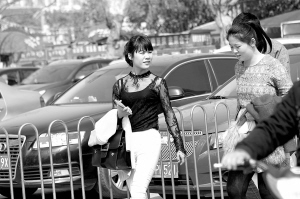 16日,市区最高气温达到23.9℃,而17日,记者从中国天气网上看到:8时,气温为12℃,12时,气温达到21℃,16时许,气温达到26.4℃。17日中午,记者走上街头看到,在“高温”天气下,一些时尚的年轻人已经换上轻薄、靓丽的春装(如图)。此外,一些商家也瞅准商机,把放有冷饮的冰柜摆放在店门外,招揽顾客。