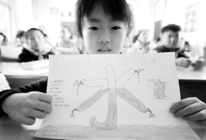 3月19日,郑州市纬一路小学学生在节水特别课堂上展示自己绘制的节水手抄报。在“世界水日”和“中国水周”到来前夕,郑州市纬一路小学开展校园节水科普教育活动,教育孩子们节约用水,提高保护水资源的意识。