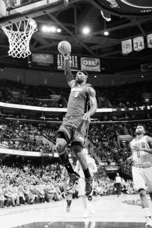 相反地,“小皇帝”詹姆斯在第一节就痛下杀手,单节11投10中,砍下了25分。三分、连续打板命中、钉板大帽,詹姆斯无所不能。首节打了近一半时,詹姆斯抢断之后发起快攻,到前场后,他直接三分线外出手,应声命中,一人连得6分,热火以23∶9开局。在韦德缺阵的情况下,詹姆斯首节火力全开,命中了5记三分球。他在本节最后45.7秒连得7分,热火以37∶25领先。