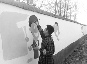 3月20日下午,记者在市区七一东路看到,道路两侧的宣传墙被粉刷一新,几名工作人员正忙着在墙壁上手绘文明漫画。这些文明漫画轻松活泼,主题鲜明,让人耳目一新。晚报记者 张志新 摄