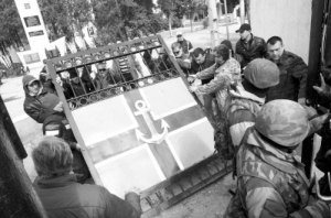一伙亲俄武装人员3月19日控制乌克兰海军位于克里米亚的总部基地,并扣押海军司令谢尔盖·盖杜克。