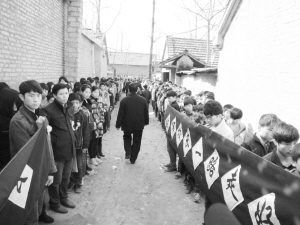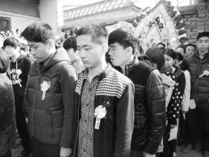 3月17日,42岁的张伟连续工作3天后,突发脑溢血,抢救无效去世。3月20日上午,张伟的追悼会在其家中举行,张伟的亲友、秋渠一中千名师生、市教育局、郸城县委县政府工作人员等社会各界人士,专程赶来送张伟最后一程(如图)。