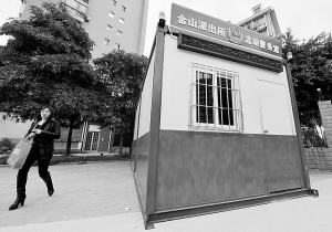 3月23日,福州市民从流动警务集装箱旁经过。近日,福州市仓山区街头出现几个特殊的集装箱,引来市民围观。这些由集装箱改造的警务室内部面积仅18平方米,外观为蓝白色警用标识,顶上设警灯,内有办公桌椅、水电等。据了解,箱式警务室具有可移动、造价低、多用途等特点,打破了传统静态警务室和治安交通岗亭的固定模式。根据辖区治安警情,这些警务室可通过吊车装卸,运至新的区域开展工作。张斌 摄