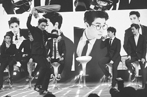 本报综合消息 3月22日,SuperJunior-M(SJM)在京发布迷你专辑《SWING》。始源、东海、厉旭、圭贤、银赫、晟敏、Henry和周觅全员出席记者会,数百名粉丝全程不断用尖叫声为他们助威。记者会上,成员们的小动作都会惹得粉丝尖叫,其中始源和银赫不停拿升降的椅子逗趣,引来笑声不断。当天播放了专辑主打歌《SWING》的MV,8位成员变身办公室型男,大跳帅炫的舞蹈。SJM成员透露这支MV采用一镜到底的拍摄方式,途中一个人出现失误,其他人都得跟着受苦,所以拍摄前苦练了很久。(王俭)