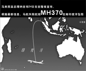 马来西亚总理纳吉布3月24日晚在吉隆坡宣布,根据英国空难调查处的通报,马来西亚航空公司MH370航班已落入印度洋南部海域。