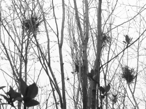 “树上怎么有那么多的鸟巢?”正当我们欣赏园中景色时,密密麻麻分布在树枝上的鸟巢吸引了大家的眼球。