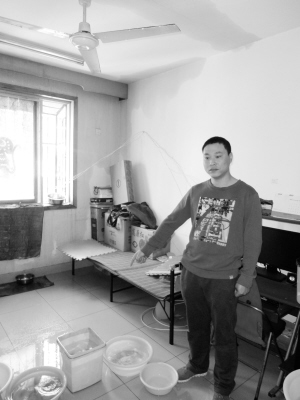 除了漏水造成房屋墙壁、地板及电视机等受损外,曹先生夫妇为此也无法正常上班,每天只能呆在家里,轮番接水、倒水,而且还要经常拖地。每到晚上,他们两岁多的孩子从幼儿园回来后,总喜欢在积水处玩耍,曹先生夫妇还要抽出一个人看孩子。“现在不光我家遭了殃,由于水太多排不及,我家楼下的邻居也遭殃了。”曹先生说。