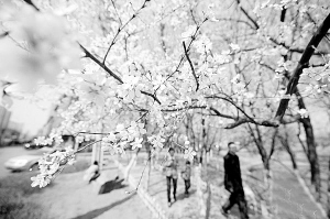 3月30日,市民在沈阳市南湖桥附近观看盛开的桃花。进入3月下旬,沈阳天气回暖明显,日最高气温有3天突破20℃。持续的偏暖天气,使得今年沈阳城的桃花比常年提早盛开半个月有余,史上少见。新华社记者 潘昱龙 摄