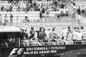 当地时间3月30日,F1赛车手乘坐大巴与车迷互动。 当日,世界一级方程式赛车(F1)马来西亚站正赛将于当地时间下午四点在马来西亚雪兰莪州雪邦赛车场开赛。