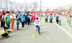 紧接着,趣味活动端球接力就开始了,小记者用球拍端球,从起点出发通过障碍物把球和球拍交给家长,随后家长端球回至起点。在这项活动中,难免会出现球掉地上等失误,但小记者却表现出了一份从容淡定,并且与家长之间配合得越来越默契。“我这次是第一次接触网球,可能在活动中表现得不是很好,但是,有父母陪我来玩,我很开心。另外,还认识了其他小朋友。”小记者王晨谕说。