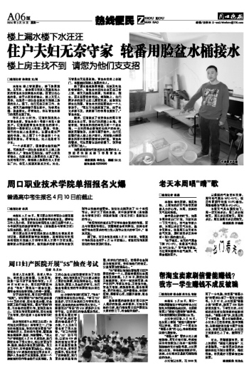 住户夫妇无奈守家 轮番用脸盆水桶接水