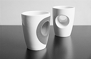 “Hug cups”没有传统杯子的把手,杯子中间的洞洞覆盖了一层柔软的绒布,刚好能容下大拇指,如此设计能让我们单手掌控杯子。