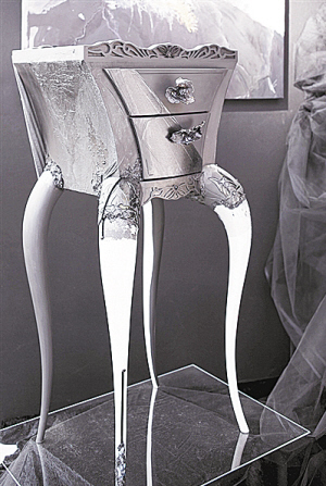 古典造型的案几,几腿形状好似章鱼柔软的触角,又似女性迷人的曲线。随意涂抹的黑白色漆把它做成了油画涂鸦作品。黑色在白色中的恣意流淌,互相交融,也许就是艺术家对黑与白的深切表达。