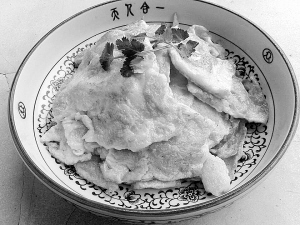 1.把龙利鱼斜边片成约8×5×0.8cm的片,放入水中洗一下,挤干水分待用。