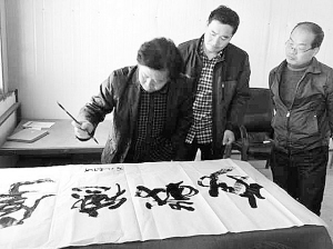 周口报业传媒集团书画院“送文化,到基层”活动,日前走进项城市汝阳刘“金凤”毛笔厂。厂长刘四平身残志坚带领残疾人创业的事迹,让艺术家们深受感动,他们现场挥毫泼墨,为该厂员工留下了带着深深祝福与美好期冀的书画作品。记者 万高鹏 摄