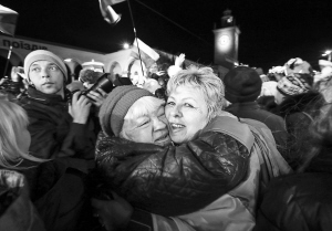 在克里米亚首府辛菲罗波尔火车站,数百人聚集在那里,挥舞俄罗斯国旗,高喊口号“克里米亚,俄罗斯”,见证火车站时钟调表的时刻。当时钟调整完毕后,在场人们唱起俄罗斯国歌。