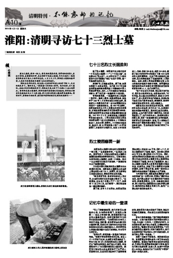 “直到今天,清明扫墓一直是我们学校的传统。”淮阳中学老师李涛告诉记者。就在4月3日早自习过后,在淮阳中学团委组织下,学生代表300多人来到淮阳县烈士陵园,举行以“继承先辈遗志,践行核心价值观,争做最美淮中人”为主题的祭扫烈士墓活动。新团员代表在烈士纪念碑前举行了庄严的入团宣誓仪式,在场老团员还举行了重温誓词活动,新老团员代表分别进行了演讲,表达对英雄的无限崇敬,抒发自己立志报国的豪情壮志。